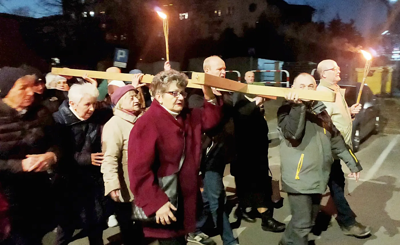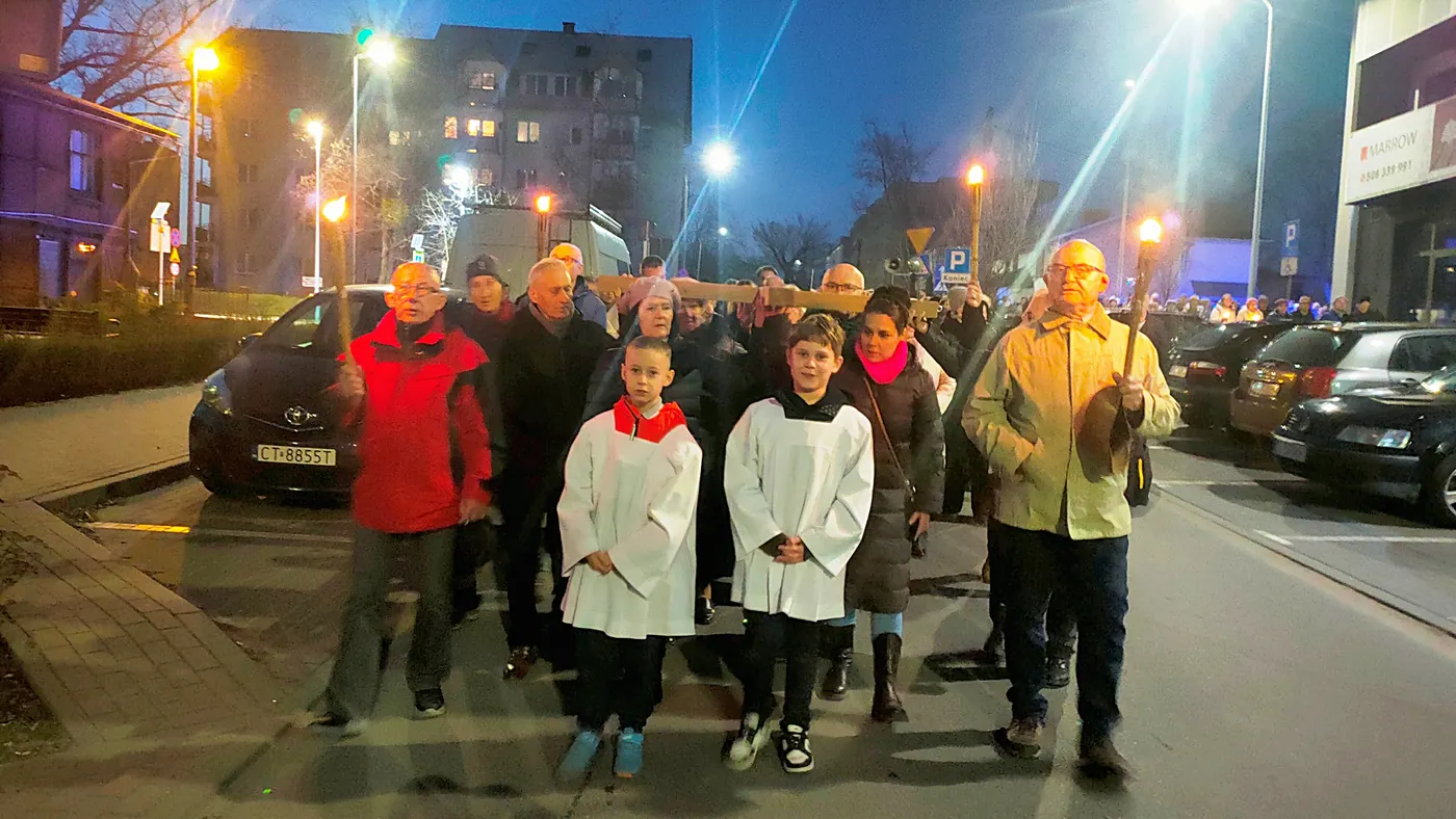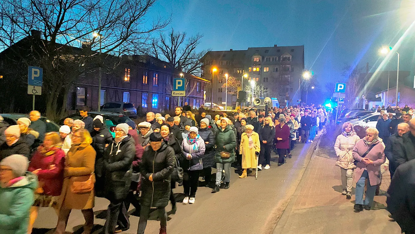 27 marca 2026r. , odbyła się Droga Krzyżowa ulicami naszej parafii. Nabożeństwo rozpoczęło się po wieczornej Mszy Świętej i przeszło ulicami: Podgórną, Wiązową , Bartosza Głowackiego do Ogrodów Maryi. Uczestnicy dali w nim wyraz swojej przynależności do Chrystusa i solidarności z Jego cierpieniem. Modlitwie przewodniczył Ksiądz Proboszcz Dariusz Żurański, a śpiew prowadziła organistka naszej parafii Pani Hania Hohlweg. Droga Krzyżowa ulicami miasta to nie tylko upamiętnienie wydarzeń historycznych, ale żywa obecność Kościoła w świecie, przypominająca o chrześcijańskich korzeniach i wartościach.